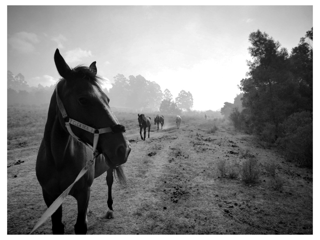 Elektra los miró irse sin moverse. Quizá ni se enteró. Quizá para ella, los pájaros sean parte del paisaje, como el aire, como el pasto que le roza el belfo al caminar.